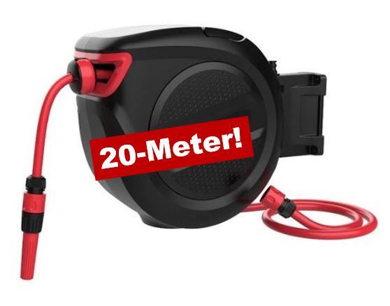 Die praktische Automatik Schlauchtrommel ist die ideale Lösung für das bequeme Aufrollen von Wasserschläuchen. Mit einem robusten 20 m Gewebeschlauch und einer automatischen Aufrollvorrichtung wird das Bewässern zum Kinderspiel. Der Schlauchaufroller lässt sich einfach an Ihren Wasserhahn anschließen und ist immer einsatzbereit. Mit dem Tragegriff und den Wandhalterungen können Sie die Trommel bequem transportieren und an der gewünschten Stelle befestigen. Die Einzugsautomatik mit Führung sorgt dafür, dass der Schlauch ordentlich und platzsparend lagenweise aufgerollt wird. Zusätzlich enthält das Produkt ein ein Anschlussstück, eine Wasserdüse und Befestigungsmaterial für die Wand-/Deckenhalterung.